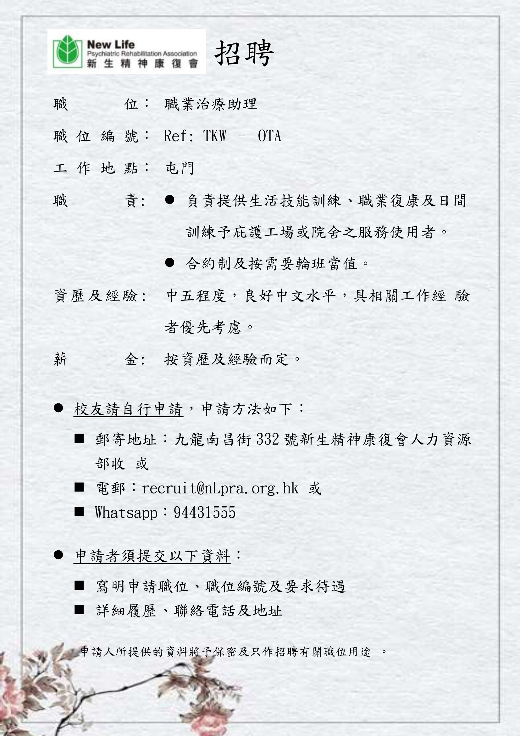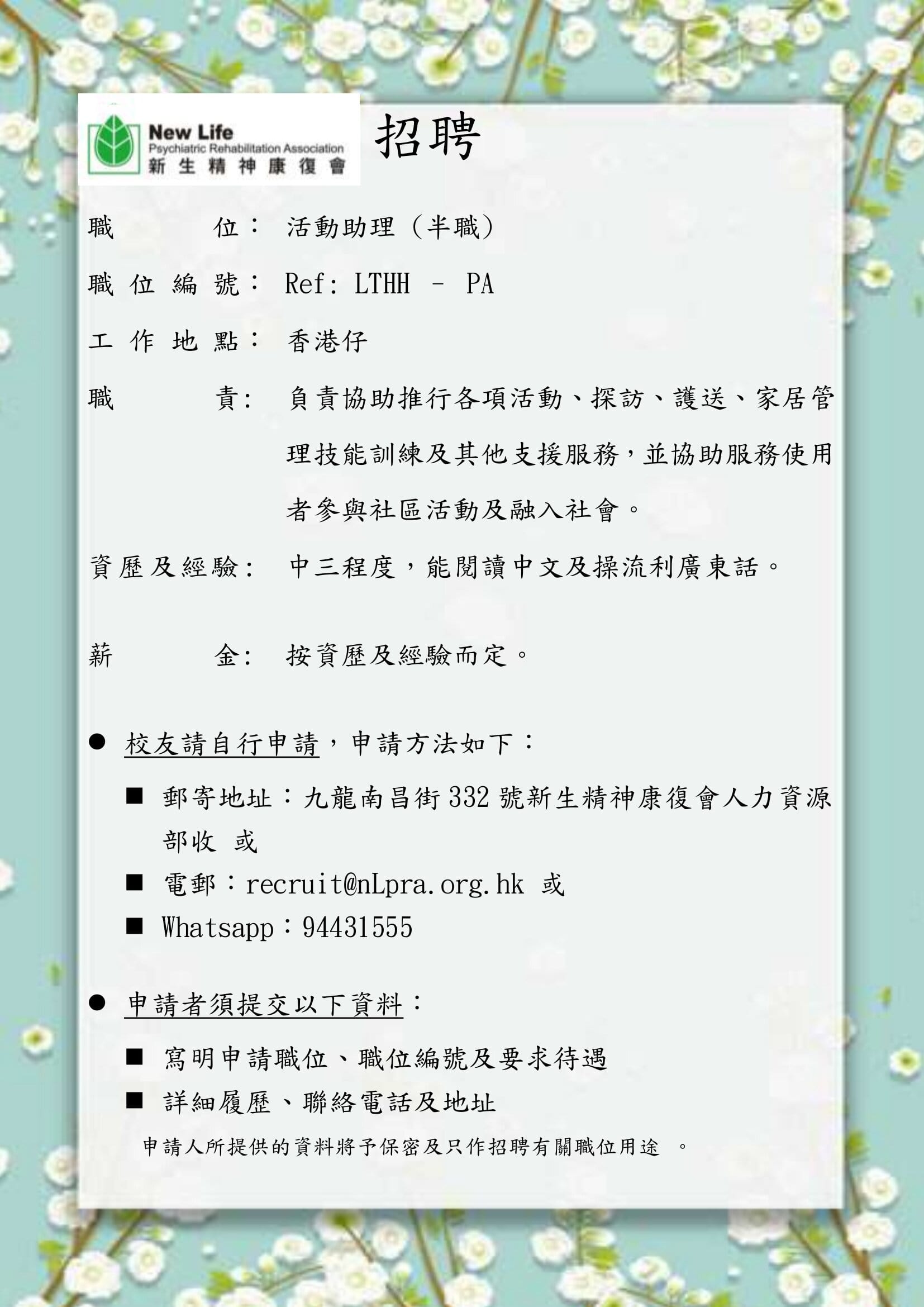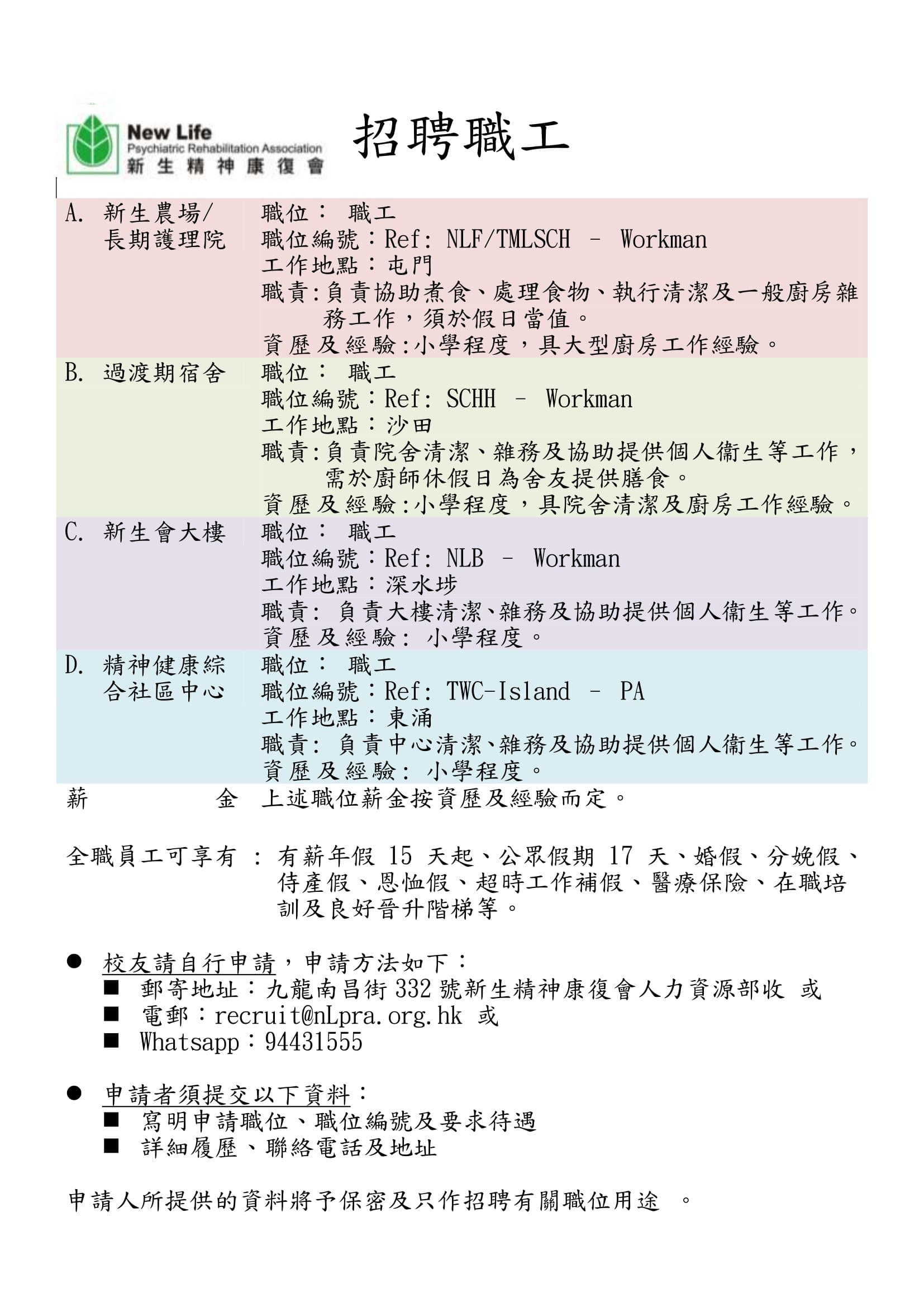 新生精神康復會職位招聘 | 炮循校友會