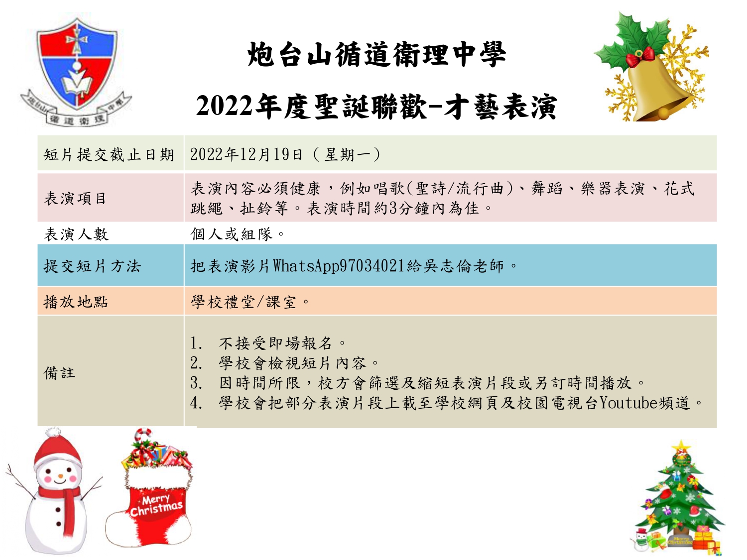 有關2022聖誕聯歡才藝表演事宜 | 炮循校友會