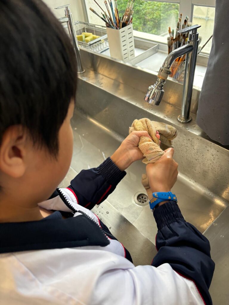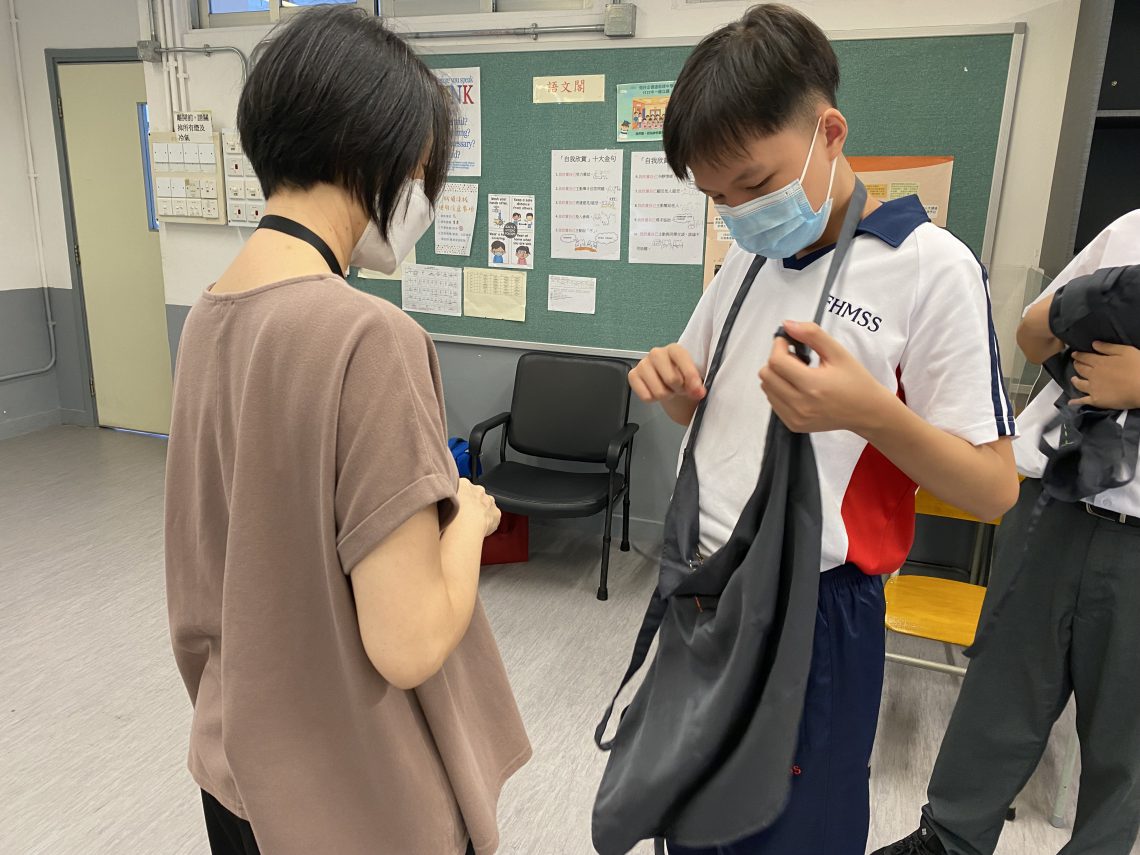 同學學習扭毛巾